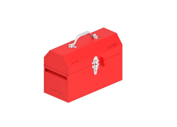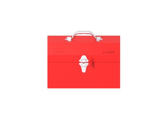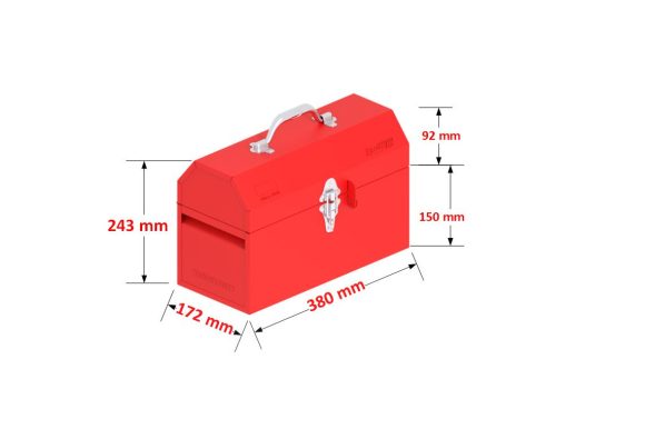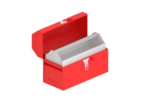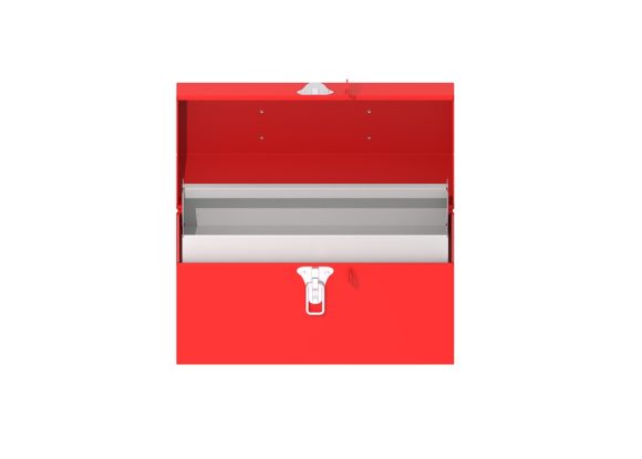 Metal tool box for protecting and transporting tools, featuring an electrostatic coating and suitable sheet thickness.