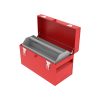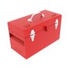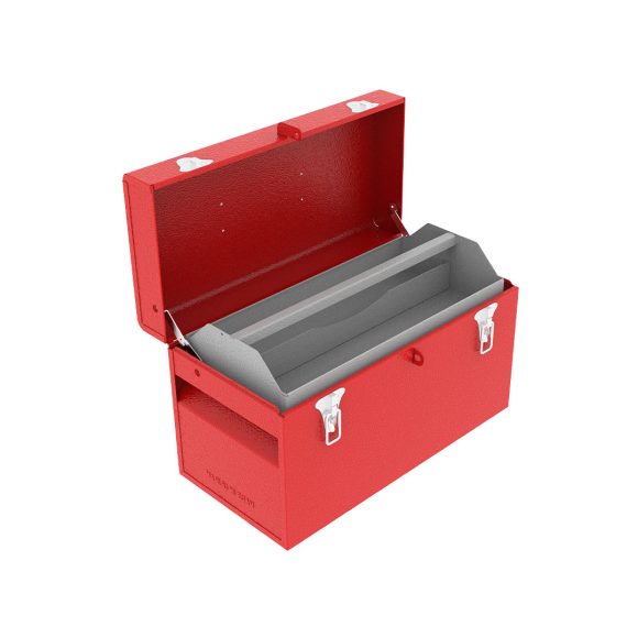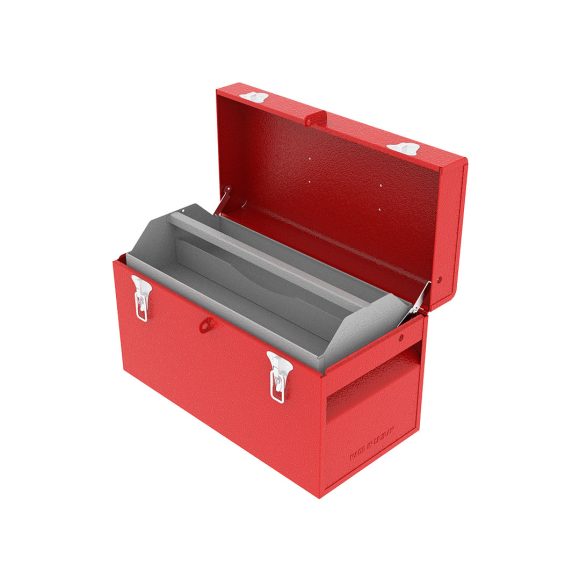 Metal tool box for protecting and transporting tools, featuring an electrostatic coating and suitable sheet thickness.