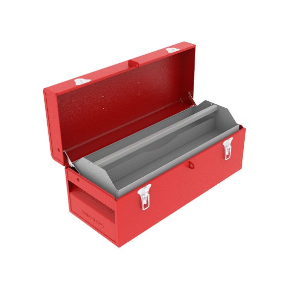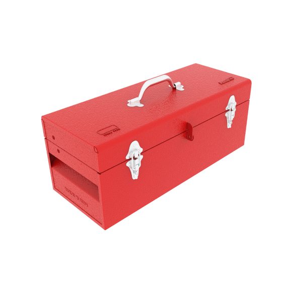 Metal tool box for protecting and transporting tools, featuring an electrostatic coating and suitable sheet thickness.