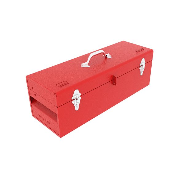 Metal tool box for protecting and transporting tools, featuring an electrostatic coating and suitable sheet thickness.