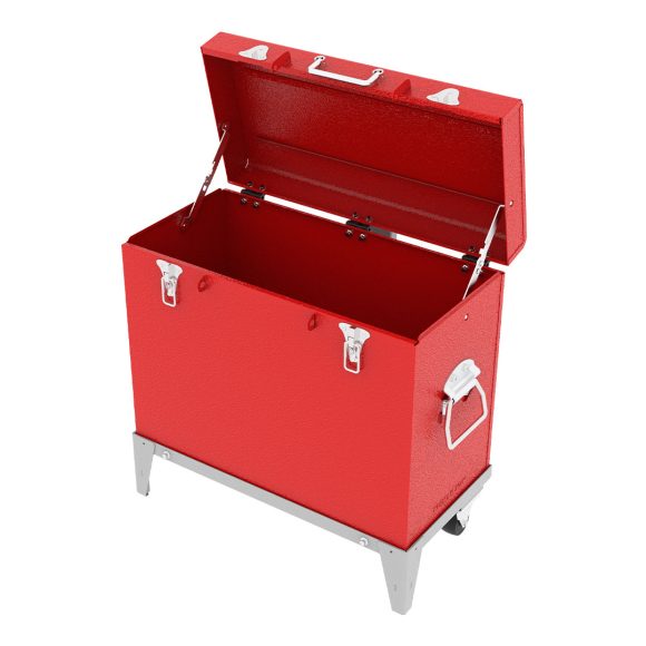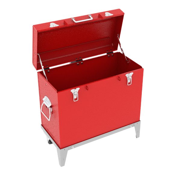 Metal tool box for protecting and transporting tools, featuring an electrostatic coating and suitable sheet thickness.