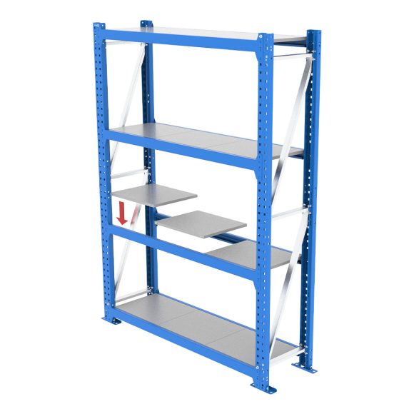 Lightweight parts storage equipment, with the ability to expand in length and height. Suitable for use in various industrial environments for better organization and order in warehouses, easy access to goods, and more efficient inventory rotation in a short period of time. It allows optimal use of warehouse space, with goods arranged from floor to ceiling, and improves warehouse system efficiency through proper arrangement and item coding.