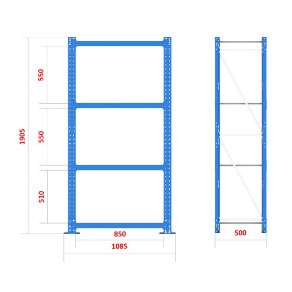 Lightweight parts storage equipment, with the ability to expand in length and height. Suitable for use in various industrial environments for better organization and order in warehouses, easy access to goods, and more efficient inventory rotation in a short period of time. It allows optimal use of warehouse space, with goods arranged from floor to ceiling, and improves warehouse system efficiency through proper arrangement and item coding.