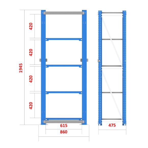 Lightweight parts storage equipment, with the ability to expand in length and height. Suitable for use in various industrial environments for better organization and order in warehouses, easy access to goods, and more efficient inventory rotation in a short period of time. It allows optimal use of warehouse space, with goods arranged from floor to ceiling, and improves warehouse system efficiency through proper arrangement and item coding.