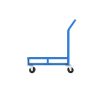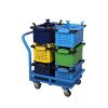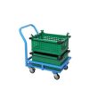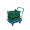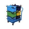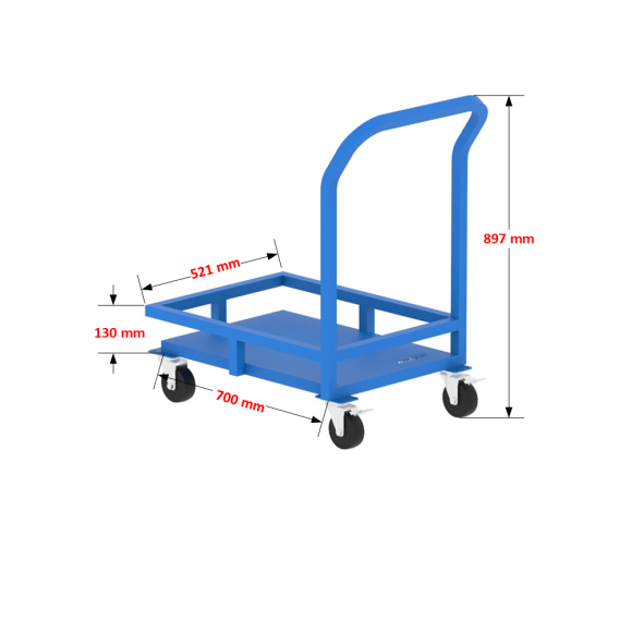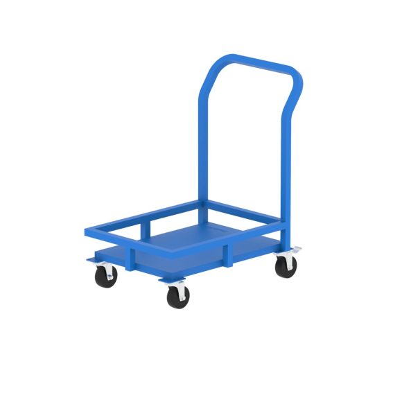 Heavy-duty trolley for transporting bulky parts in various industrial and commercial environments, featuring an electrostatic paint coating and lockable wheels.