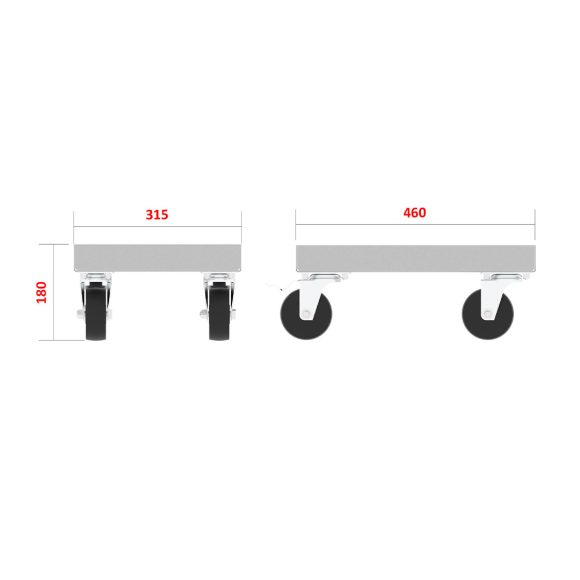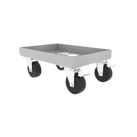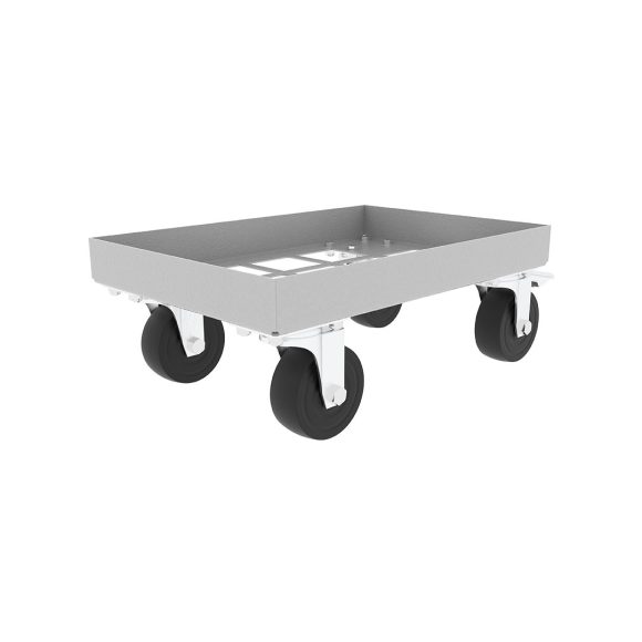 Heavy-duty trolley for transporting bulky parts in various industrial and commercial environments, featuring an electrostatic paint coating and lockable wheels.
