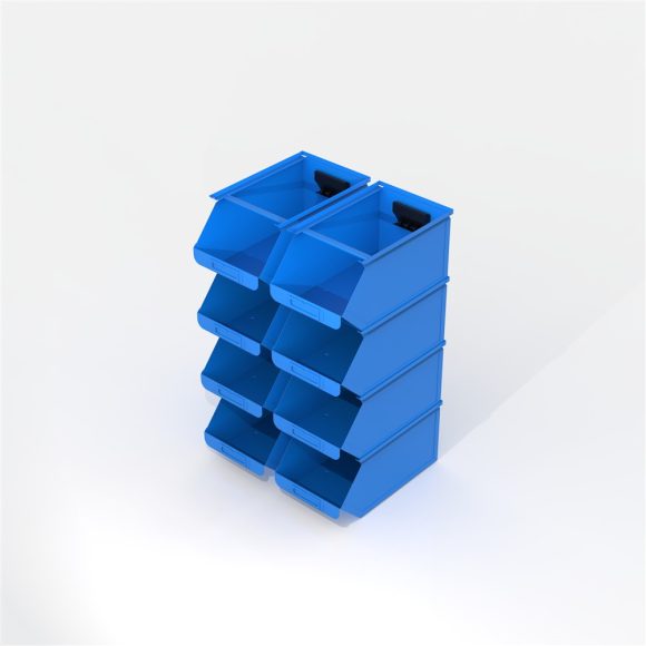 Metal pallets for storing parts, featuring electrostatic paint coating and appropriate sheet thickness, suitable for use in various industrial and retail environments.