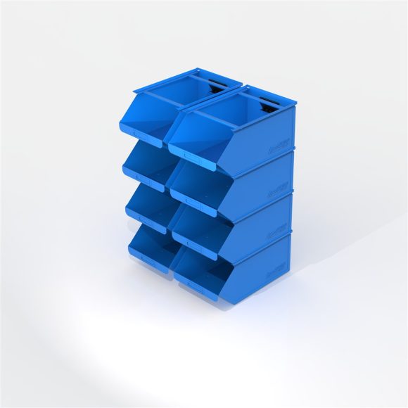 Metal pallets for storing parts, featuring electrostatic paint coating and appropriate sheet thickness, suitable for use in various industrial and retail environments.