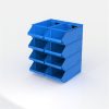 Metal pallets for storing parts, featuring electrostatic paint coating and appropriate sheet thickness, suitable for use in various industrial and retail environments.