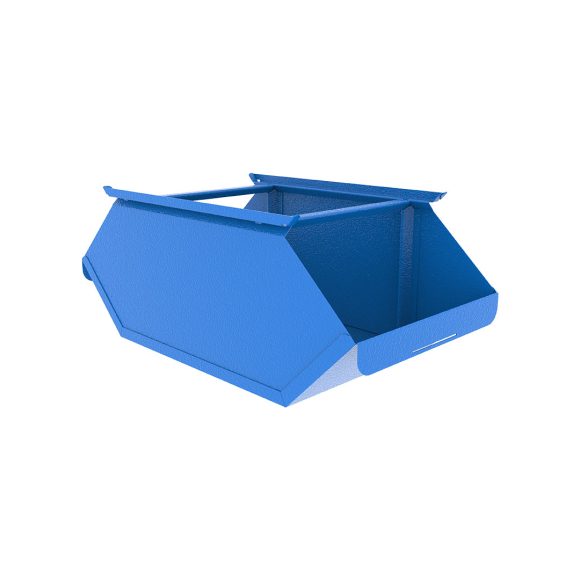 Metal pallets for storing parts, featuring electrostatic paint coating and appropriate sheet thickness, suitable for use in various industrial and retail environments.