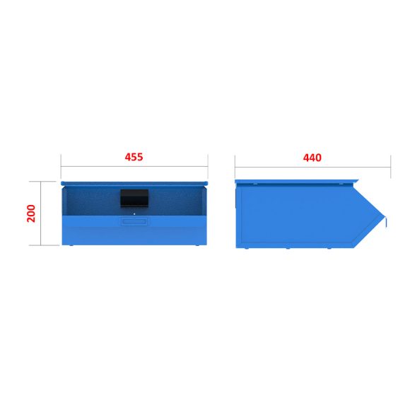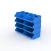 Metal pallets for storing parts, featuring electrostatic paint coating and appropriate sheet thickness, suitable for use in various industrial and retail environments.