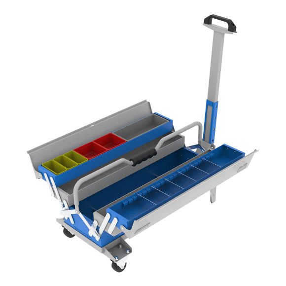 Metal tool box for protecting and transporting tools, featuring an electrostatic coating and suitable sheet thickness.