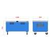 Heavy-duty toolboxes for transporting precision, electrical, and hand tools for various land, air, and sea transit, equipped with lockable wheels and two removable pallet trays, featuring an electrostatic paint coating.