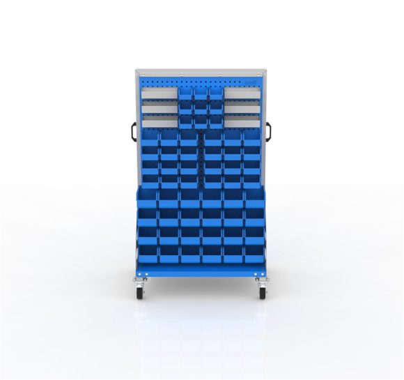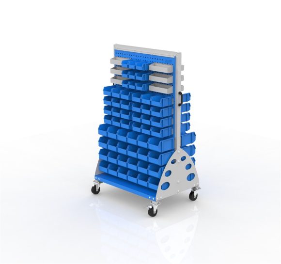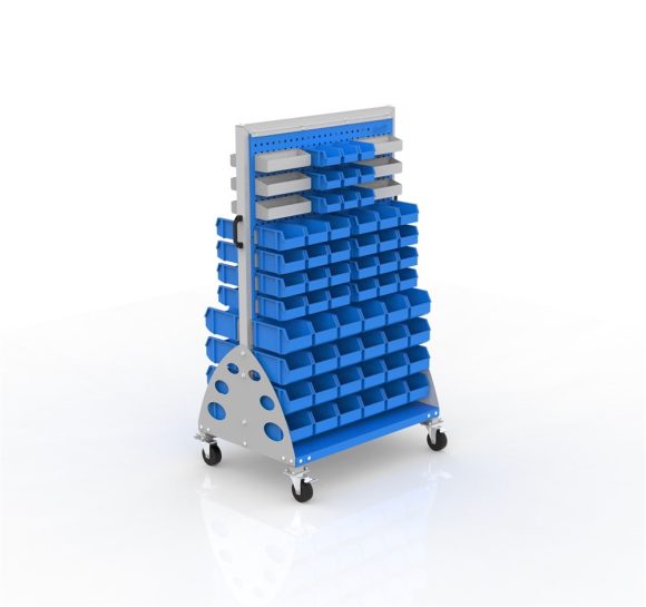 Two-sided wheeled tool display board – suitable for use in various industrial environments for displaying and storing tools.