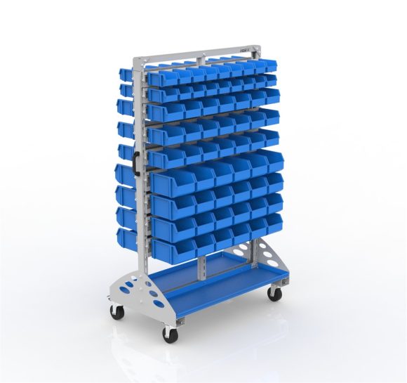 Two-sided wheeled tool display board – suitable for use in various industrial environments for displaying and storing tools.