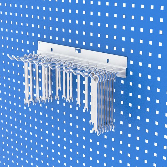 Holder clamps for protecting and displaying tools and parts, with the ability to attach to any Shahrakh product that has a mesh body. These clamps are equipped with an electrostatic paint coating, galvanized plating, or chrome plating for enhanced durability and resistance to corrosion.
