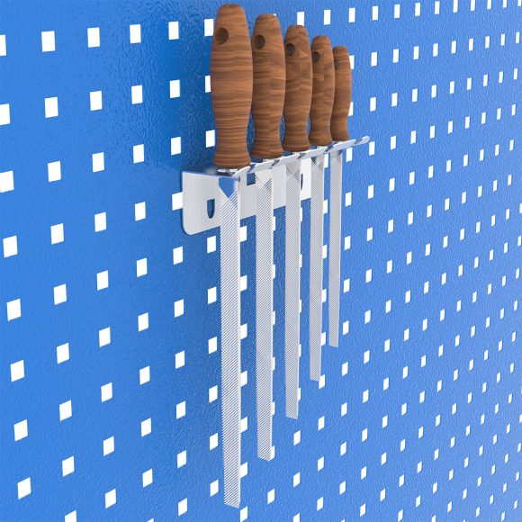 Holder clamps for protecting and displaying tools and parts, with the ability to attach to any Shahrakh product that has a mesh body. These clamps are equipped with an electrostatic paint coating, galvanized plating, or chrome plating for enhanced durability and resistance to corrosion.