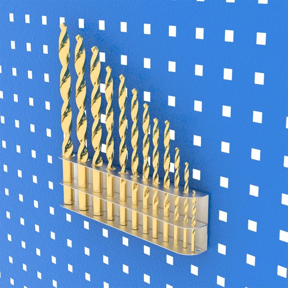 Holder clamps for protecting and displaying tools and parts, with the ability to attach to any Shahrakh product that has a mesh body. These clamps are equipped with an electrostatic paint coating, galvanized plating, or chrome plating for enhanced durability and resistance to corrosion.