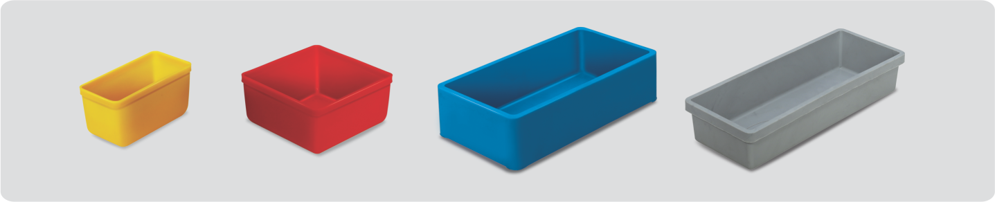 Plastic Pallets: Plastic pallets are made of Poly Ethylene (PE) in four different sizes to organize the drawers.