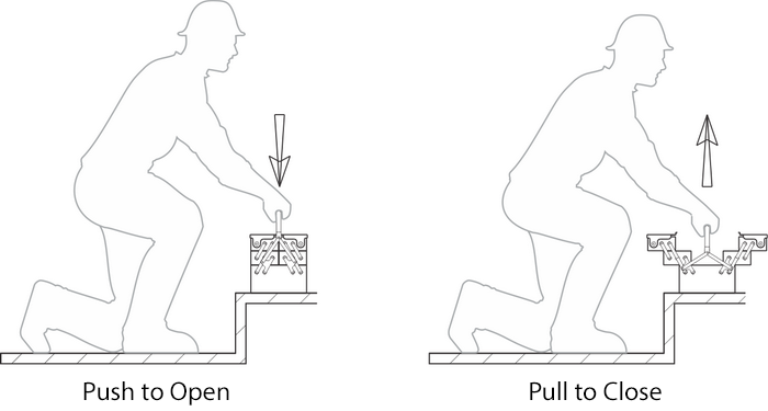 Swing Hanger GearBox: These locks are used in both single and side by side closets. An steel rod attached to the lock applies to the doors. The below picture shows how to open and close them.