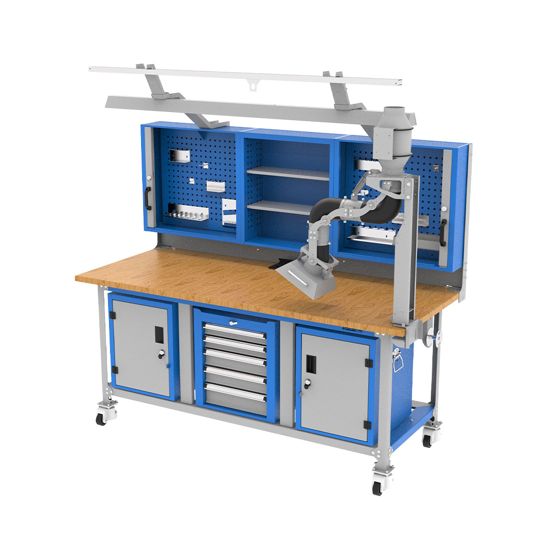 میز کار الکترونیک با کلاف و پایه های فلز و سطح رو عایق از جنس ام دی اف، قابل استفاده برای کارهای سبک در انواع محیط های صنعتی، دارای پوشش رنگ الکترواستاتیک و قابلیت دمونتاژ