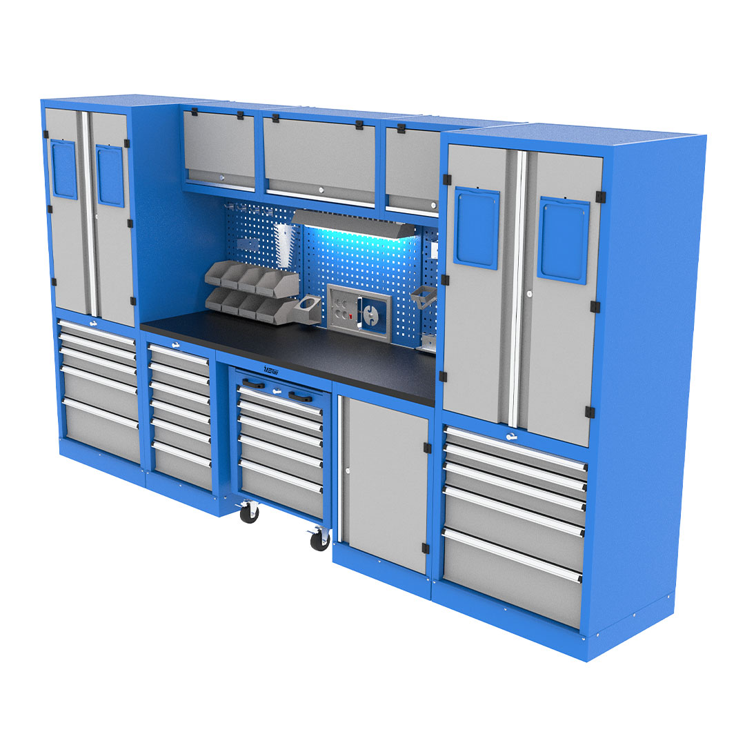 کابینت صنعتی دارای جعبه ابزار کارگاهی، کمد و تابلو نمایش ابزار است که ترکیبی از محصولات مختلف میباشد. دارای پوشش رنگ الکترو استاتیک، قابل استفاده در انواع محیط های صنعتی