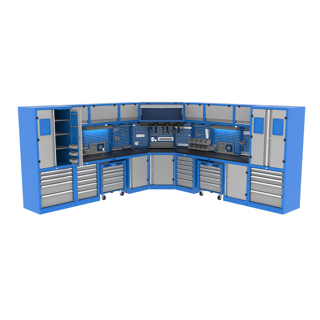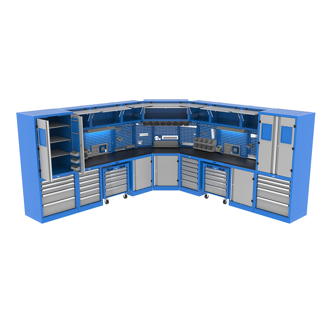کابینت صنعتی دارای جعبه ابار کارگاهی، کمد و  تابلو نمایش ابزار است که ترکیبی از محصولات مختلف میباشد. دارای پوشش رنگ الکترو استاتیک، قابل استفاده در انواع محیط های صنعتی