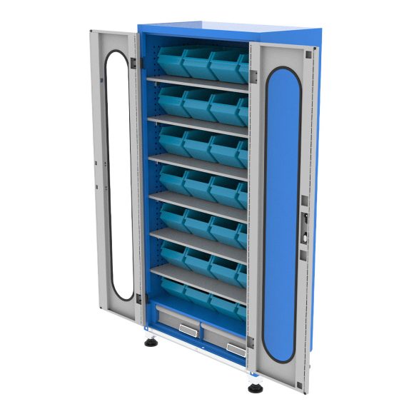 کمد محافظ ابزار جهت محافظت و نگهداری از ابزار آلات و قطعات صنعتی با پوشش رنگ الکترواستاتیک و فضای تفکیک شده، ضخامت ورق مناسب، قابل استفاده در انواع محیط های صنعتی