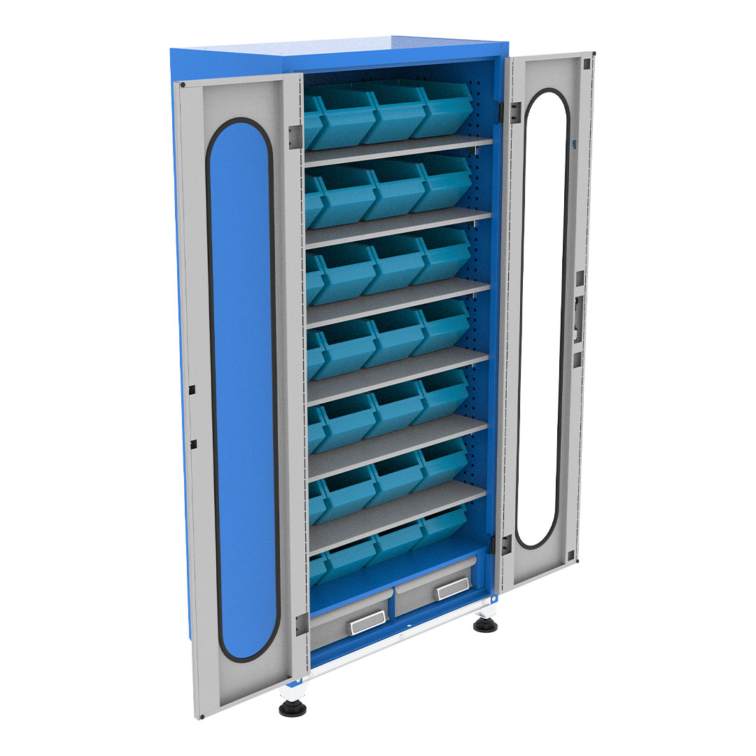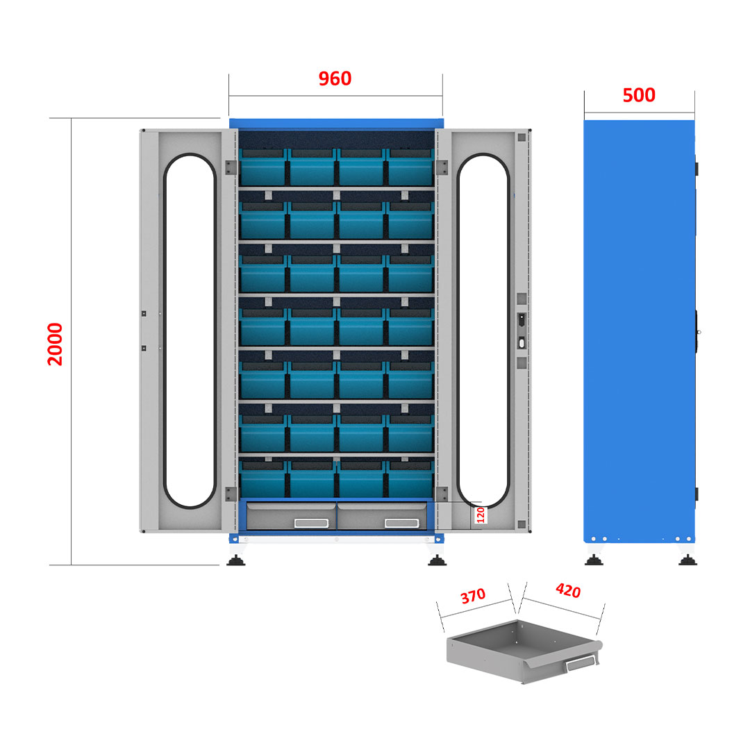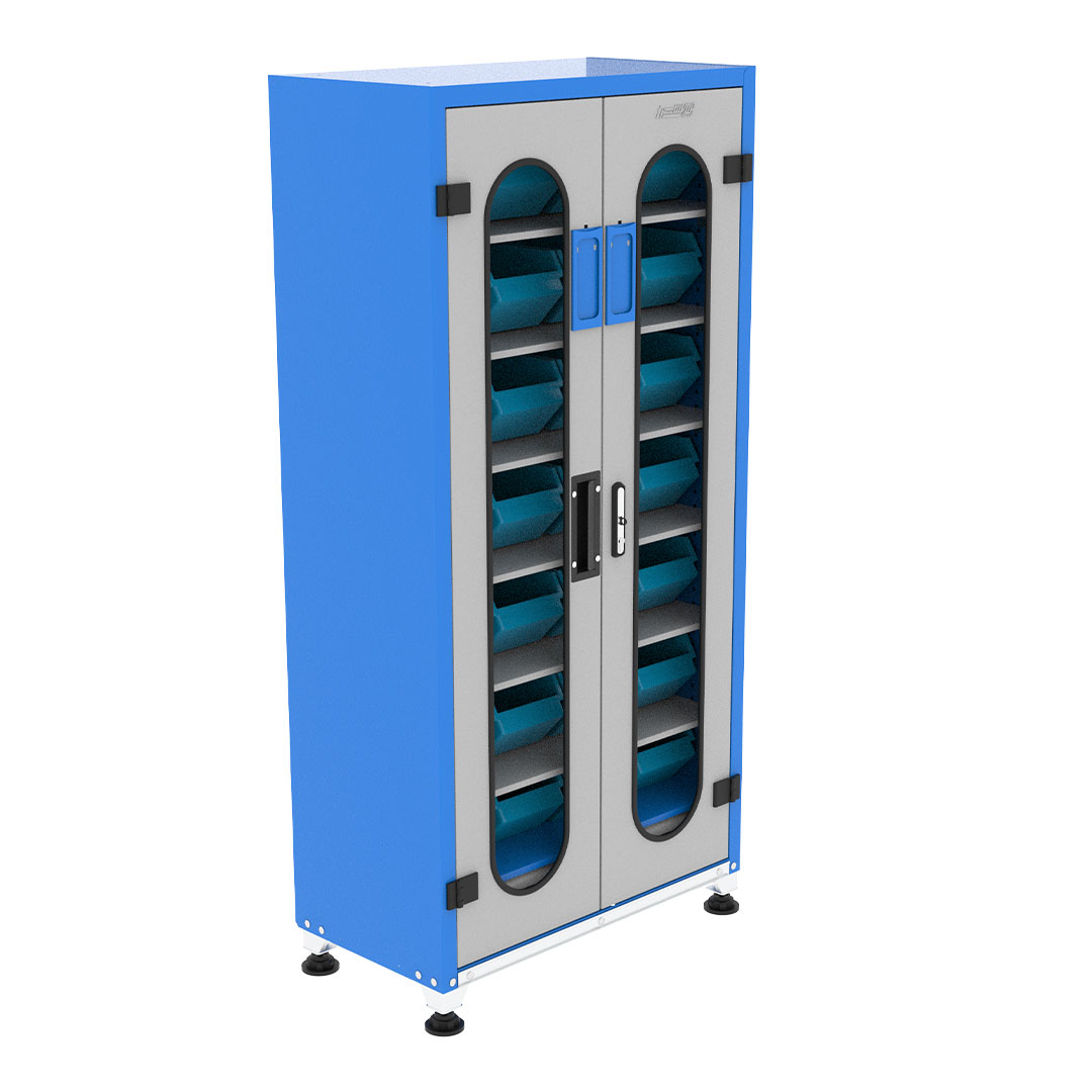 کمد محافظ ابزار جهت محافظت و نگهداری از ابزار آلات و قطعات صنعتی با پوشش رنگ الکترواستاتیک و فضای تفکیک شده، ضخامت ورق مناسب، قابل استفاده در انواع محیط های صنعتی