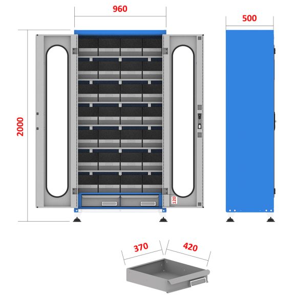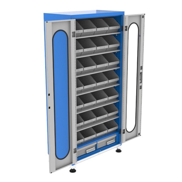 کمد محافظ ابزار جهت محافظت و نگهداری از ابزار آلات و قطعات صنعتی با پوشش رنگ الکترواستاتیک و فضای تفکیک شده، ضخامت ورق مناسب، قابل استفاده در انواع محیط های صنعتی